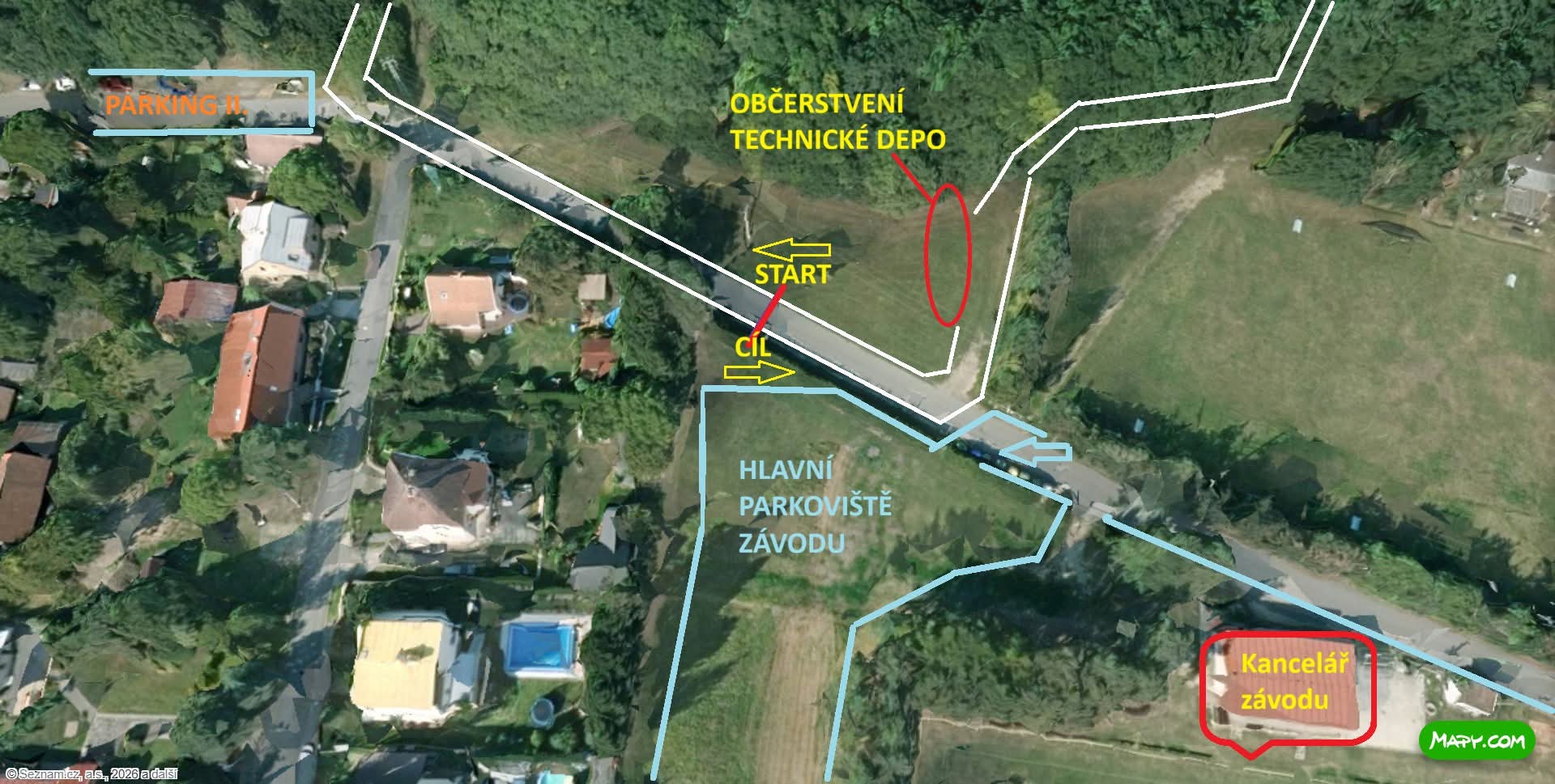 Závod startuje ve 13:00 na silnici u areálu TJ Sokola a pokračuje po lesních a polních cestách v okolí Jabkenic, Seletic, Ledců, Pěčic, Semčic a Kosořic.